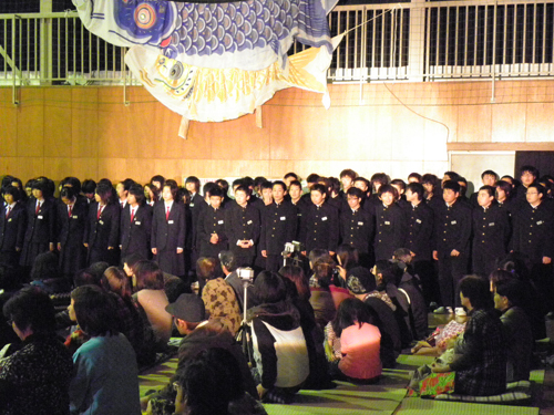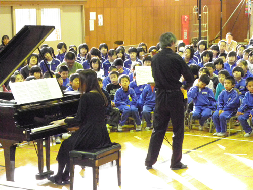 本校は被害後、地区の避難場所や診療所、公民館、中学校が同居する“多機能複合施設”の役割を担うことになり、戸惑いの中で学校を再会してまいりました。そのような中、大きな混乱や事故もなく教育活動を営んでこられましたのも、地域の方々の絶大なるご理解と献身的なご協力、子どもたちはもちろん、保護者の方々や教職員が一丸となって、その役割を果たそうという使命感に燃えて、その日一日を懸命に過ごしてきた証を存じます。そして、その一つ一つの営みを支えてくださったのが、皆様方から頂戴した数々の真心のこもったご支援と激励の言葉でした。